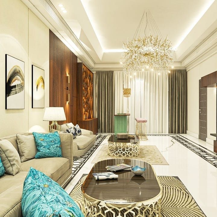 I design living and dining areas that serve as the heart of the home, balancing grand aesthetics with everyday comfort. These spaces often feature a blend of modern and classic styles, incorporating statement lighting, premium materials like marble and wood, and custom-built elements like in-home bars.