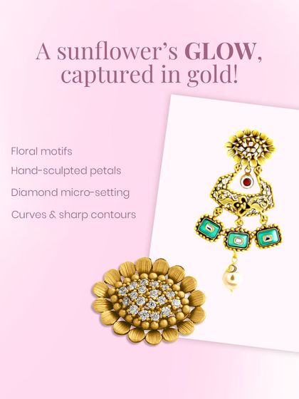 Make a statement with the understated luxury of our 22kt matte gold collection. Featuring geometric shapes, sculptural forms, and nature-inspired motifs like the sunflower, these pieces offer a modern take on classic gold.