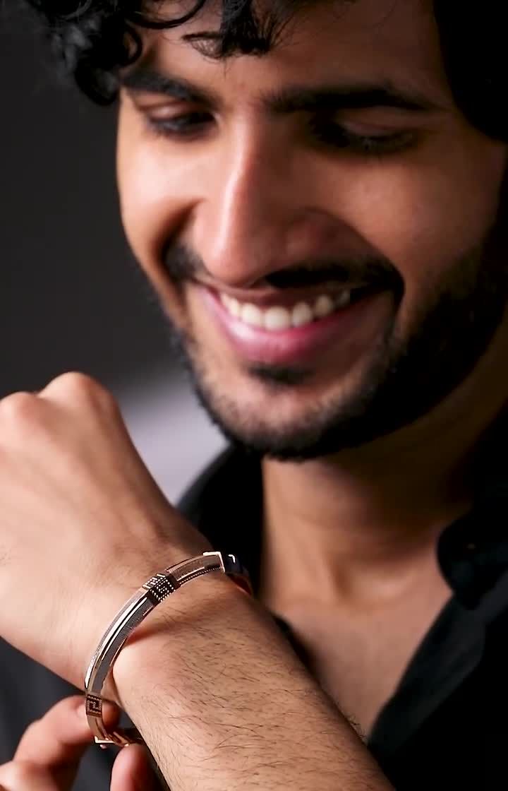 My bracelets and kadas are designed for the modern man as a signature part of his daily wear. The collection includes sleek rose gold kadas with pavé diamonds, bracelets combining gold with materials like leather, and bold, interlocking link designs.