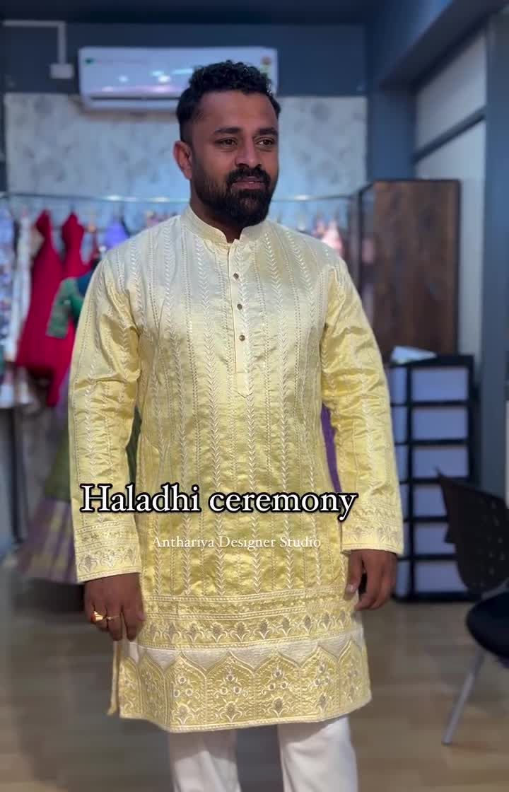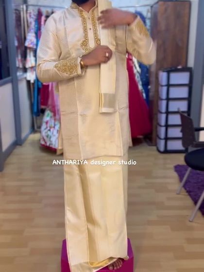 I design complete wedding wardrobes for grooms, ensuring each outfit is perfect for the occasion. This includes traditional silk kurtas and veshtis for the muhurtham, elegant Indo-Western suits for receptions, and vibrant kurtas for haldi ceremonies.