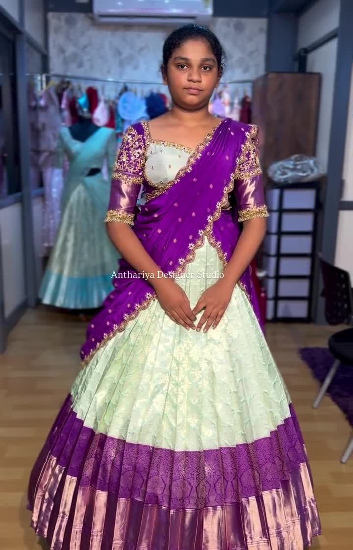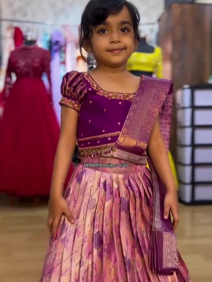 Your child deserves to shine just as brightly. I create custom ethnic wear for kids, including traditional Pattu Pavadais and Langa Davanis for girls, and smart kurta pajamas with Nehru jackets for boys, all made with comfortable, high-quality fabrics.