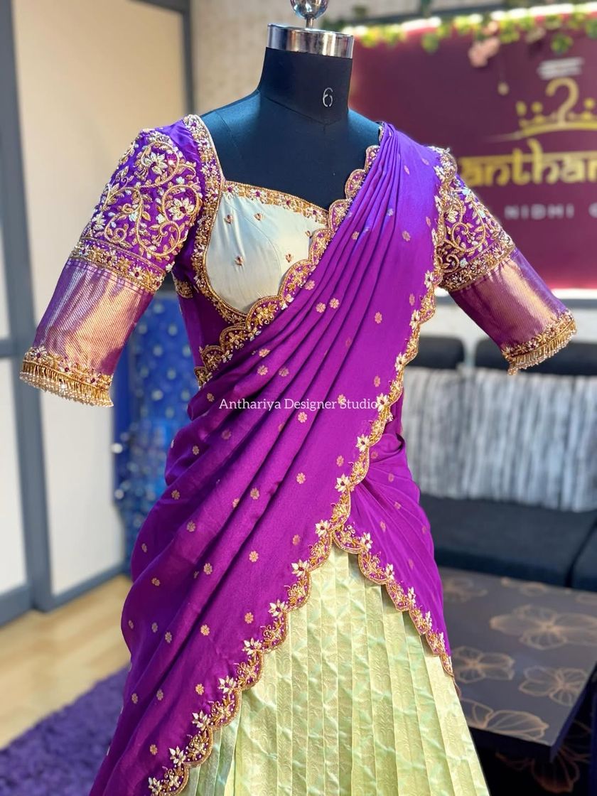 We transform your cherished sarees into stunning Langa Vonis or half sarees, perfect for any celebration. We focus on preserving the essence of your saree while creating a modern, perfectly fitted traditional outfit, complete with custom blouses and intricate handwork.