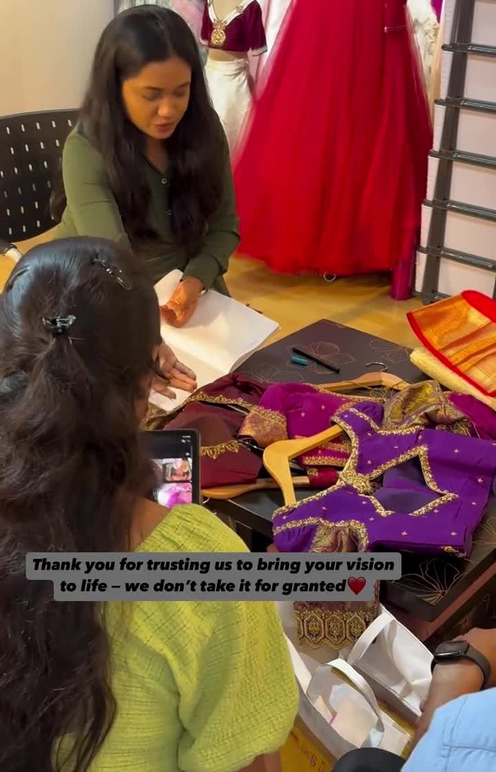 I believe in a truly collaborative design journey. From our first chat to selecting fabrics and approving embroidery samples, you are part of the process every step of the way. You can bring your own saree or choose from my handpicked collection of pure silks.