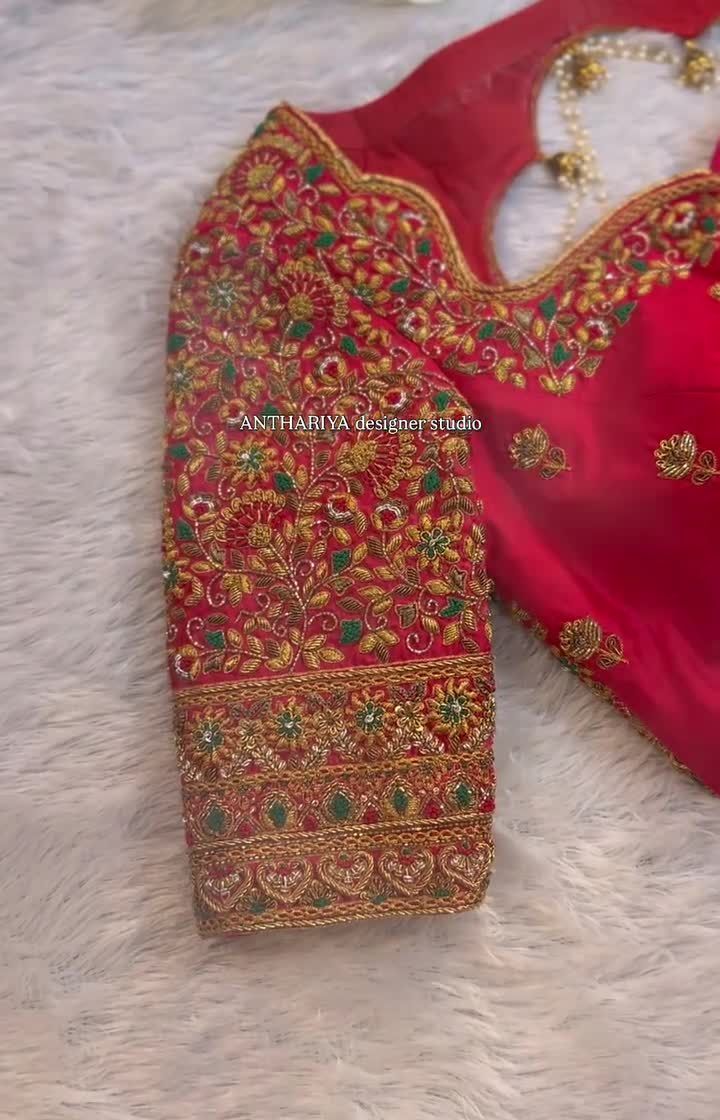 Every blouse is a masterpiece, crafted exclusively with hand embroidery techniques like zardozi, aari, and pearl work. We design unique necklines, sleeve patterns, and intricate motifs like butterflies or peacocks to perfectly complement your saree.