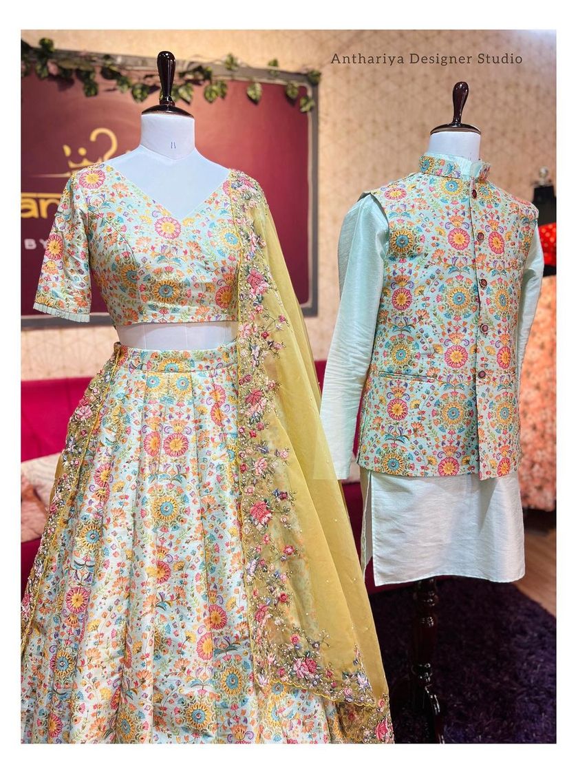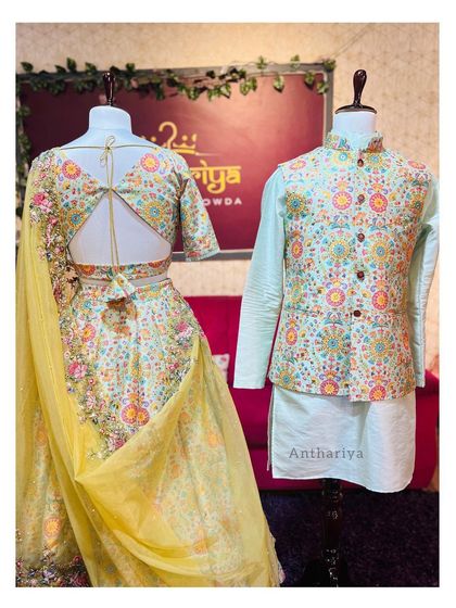 Explore our collection of traditional outfits perfect for engagements, sangeets, and other ceremonies. This selection includes intricately embroidered lehengas with matching kurta sets and classic South Indian half sarees.