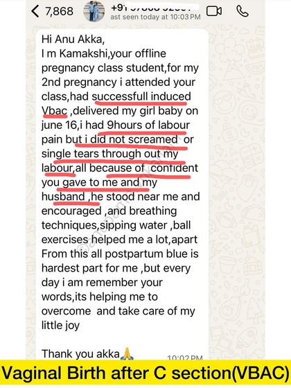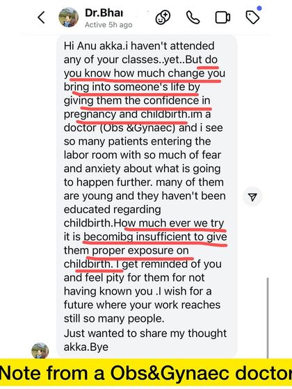 I teach practical breathing, pain management, and labor exercises for all birth types, with partner support and advice for special medical situations, available online or in-person in English and Tamil.