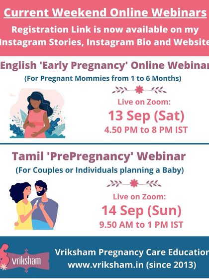 Pregnancy & Birth Classes (Tamil/English) - I run online/offline classes for pre-pregnancy, early pregnancy, labor, and breastfeeding, including Tamil prenatal classes.