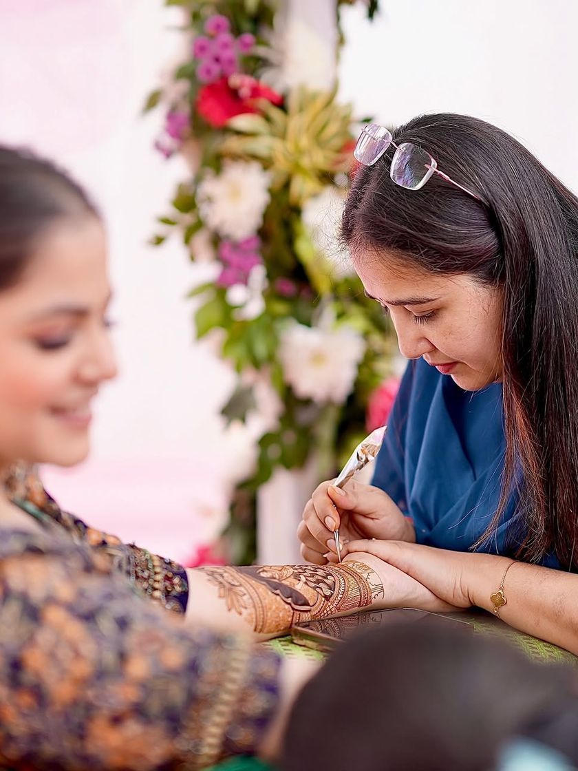 Your bridal mehandi should tell your unique story. I specialize in creating detailed narrative designs, from traditional wedding scenes and baraat processions to personalized couple figures, ensuring your mehandi is as memorable as your special day.