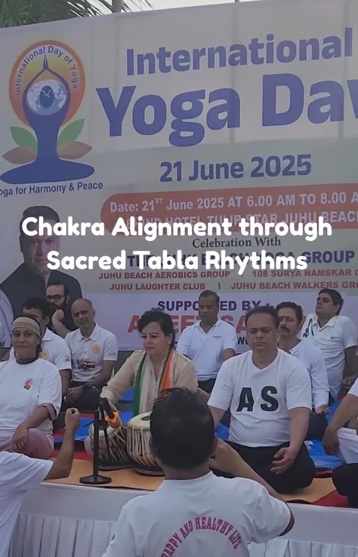 I guide large groups through rhythm meditation and sound healing to relieve anxiety and find collective calm. These sessions, often held at events like International Yoga Day, use sacred Tabla rhythms for guided meditation and Chakra balancing.