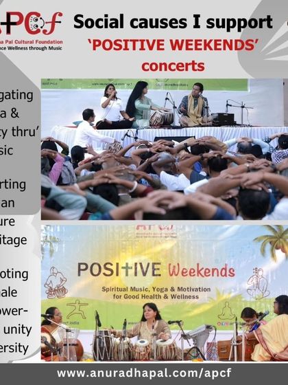 A portion of your fee supports my foundation, APCF, which provides free rhythm wellness programs for children, women, and elders. We also support marginalized artists and promote environmental awareness through our 'Positive Weekends' initiative.