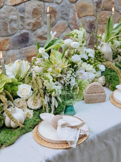 We believe a beautifully set table is the foundation of a memorable event. We offer signature styling services, including our nature-inspired 'Earth Table' with lush greens and our vibrant 'Orchard Table' with tropical florals, to make your celebration effortlessly special.