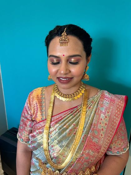 I specialize in creating timeless South Indian makeup looks perfect for ceremonies, festivals, and family events. The focus is on a soft, dewy base and features that complement traditional attire and jewellery, ensuring you look elegant and authentic.