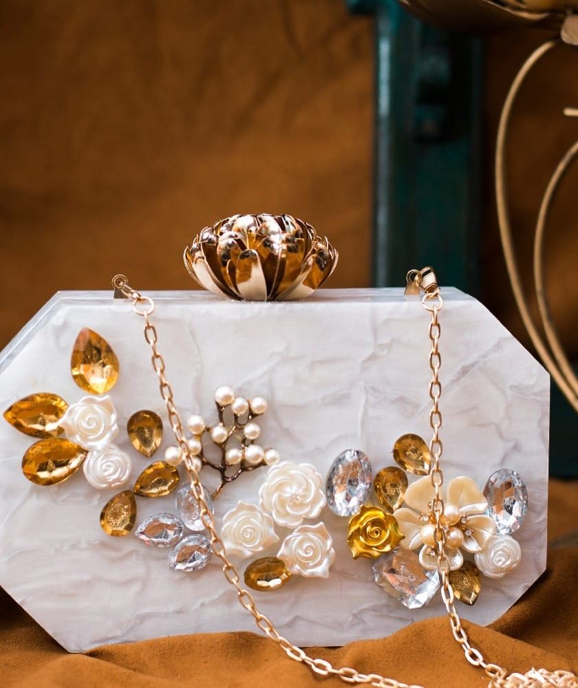 Add the finishing touch to your ensemble with my collection of luxurious acrylic clutches. Adorned with rhinestones and intricate details, these clutches are designed to bring a touch of glamour to any occasion.