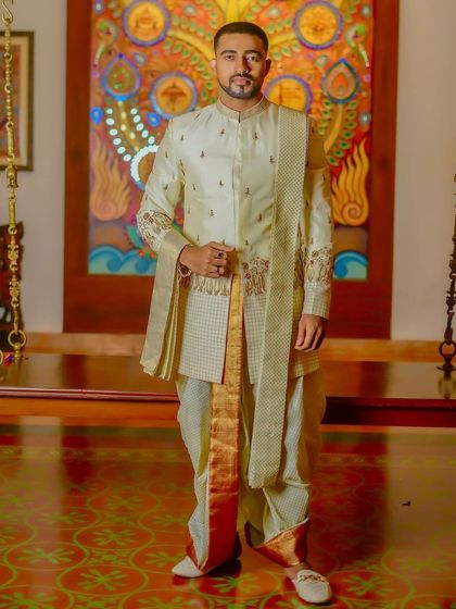 Modern South Indian grooms seeking sophisticated wedding attire that reflects both cultural heritage and contemporary fashion sensibilities.