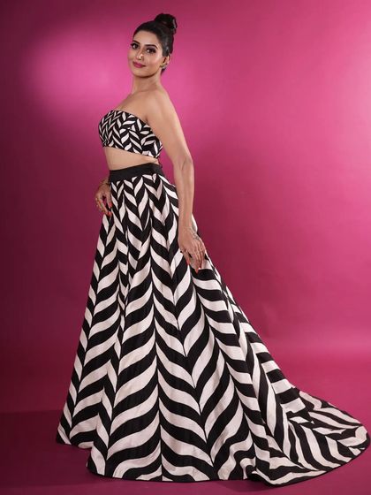 - Crop tops with palazzos and skirts for those who like comfort and style. Think organza palazzos, chevron tube tops, and even quirky draped saree-blouse fusions.