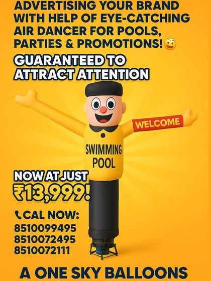 Custom Branding Ka Option - Logo, naam, jo chahiye print ho jayega. Custom advertising sky balloons aur air dancer par bhi.