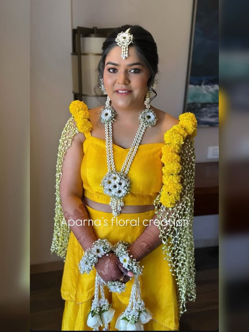 I design vibrant, fresh floral jewellery perfect for Haldi and Mehendi ceremonies. From complete sets for the bride to matching pieces for the bridesmaids, everything is customizable. My designs include popular items like floral kaliree and elegant floral dupattas (shela) to complete your pre-wedding look.