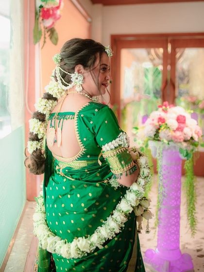 I craft unique, wearable floral art like the traditional shela, floral dupattas, and chaddars. These are perfect for brides, baby showers (dohale jevan), or Haldi ceremonies, featuring intricate weaving with jasmine (tagar), lotus, or other fresh flowers.