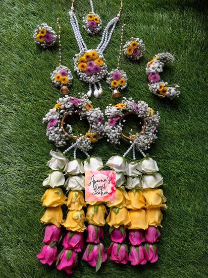 I specialize in creating intricate floral jewelry using fresh flowers like jasmine, roses, and marigolds, often accented with pearls and beads. My offerings include necklaces, earrings, bracelets, hair accessories (including traditional Veni Patta), Kaliree, and floral purses.