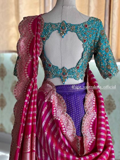 At APR Vastrakala, tradition and perfection is our jam. We don't just stitch clothes, we make art, especially for brides. Some days it's Kemp and Polki stones, some days it's antique zardosi, all hand-done. One elegant blouse can change the whole saree vibe, you know? Seeing our brides glow in our pieces - that's pure happiness for us.
