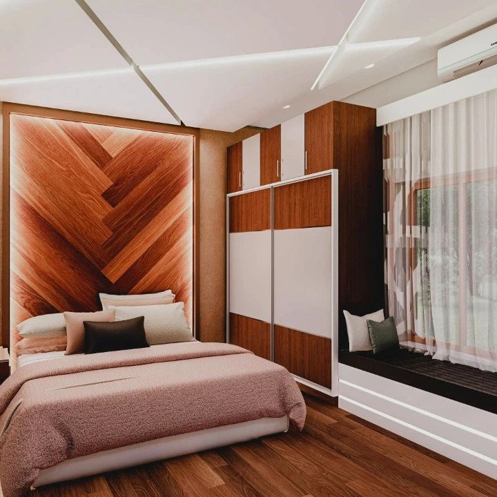 I design bedrooms that are your personal retreat, focusing on creating a calm and organized atmosphere. My designs often feature unique accent walls using wood or 3D panels, clever storage solutions with sliding wardrobes, and integrated study or dressing tables.
