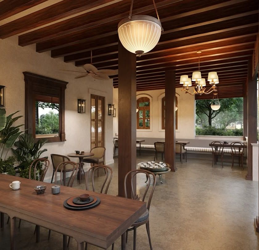 My design work extends to public and hospitality spaces, where the goal is to create a memorable experience. For this heritage cafe restoration, I blended rustic charm with modern touches. For lobbies, I focus on crafting a statement of quiet luxury that elevates the arrival experience.