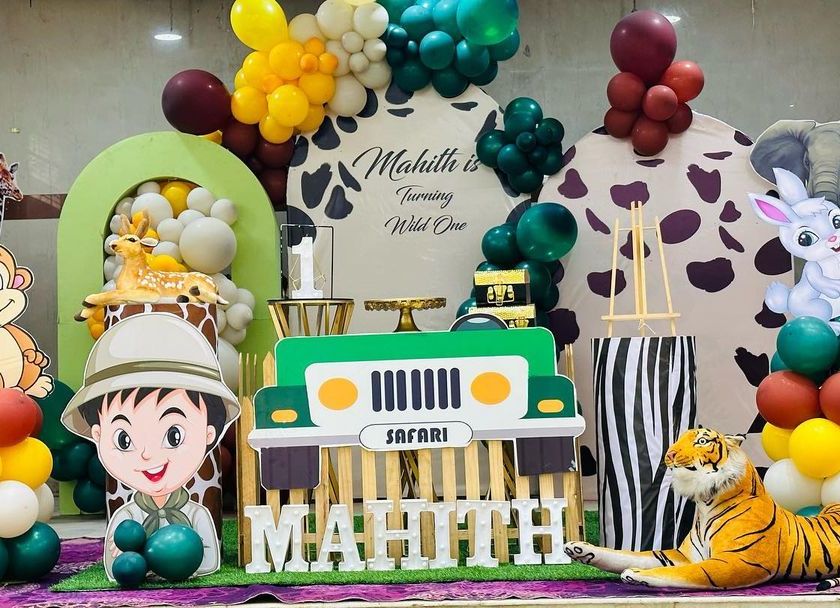 If you have a theme in mind, we will bring it to life. We create immersive setups for kids' parties, from wild jungle safaris to royal princess celebrations, complete with custom cutouts, props, and colourful balloon arrangements.