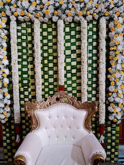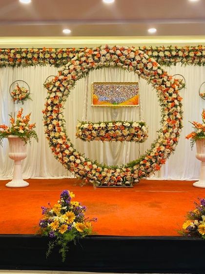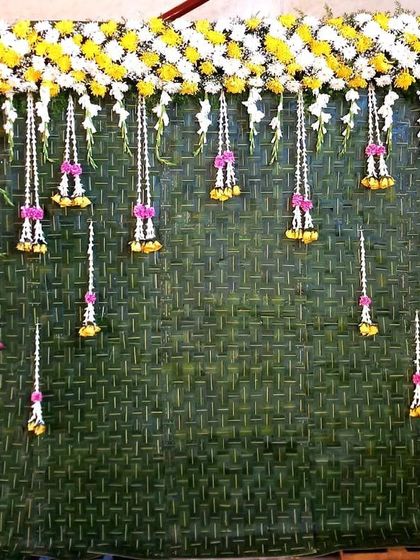 Traditional & Modern Setups - We do traditional flower decor Bangalore style, banana leaves for Varamahalakshmi, and modern sangeet decoration too.