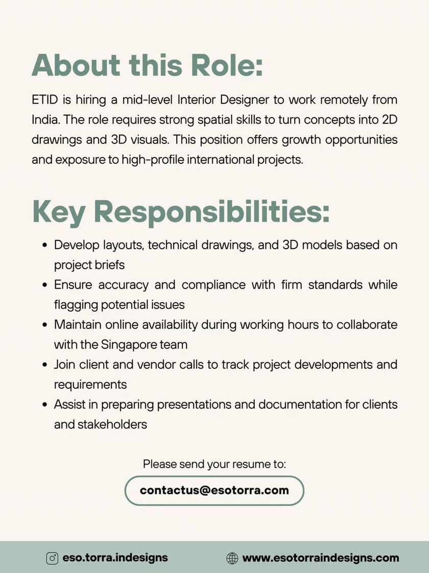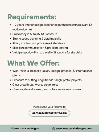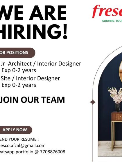 I connect talented interior designers with firms creating inspiring residential, commercial, and hospitality spaces. This collection includes roles for freshers, junior designers, and experienced senior designers.
