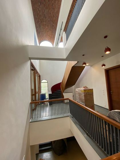 This project in Hyderabad transforms a single-story structure into a multi-volume residence using adaptive reuse principles. The design is defined by monumental, load-bearing brick vaults and a feature spiral staircase, creating dramatic interior spaces that are both modern and timeless.