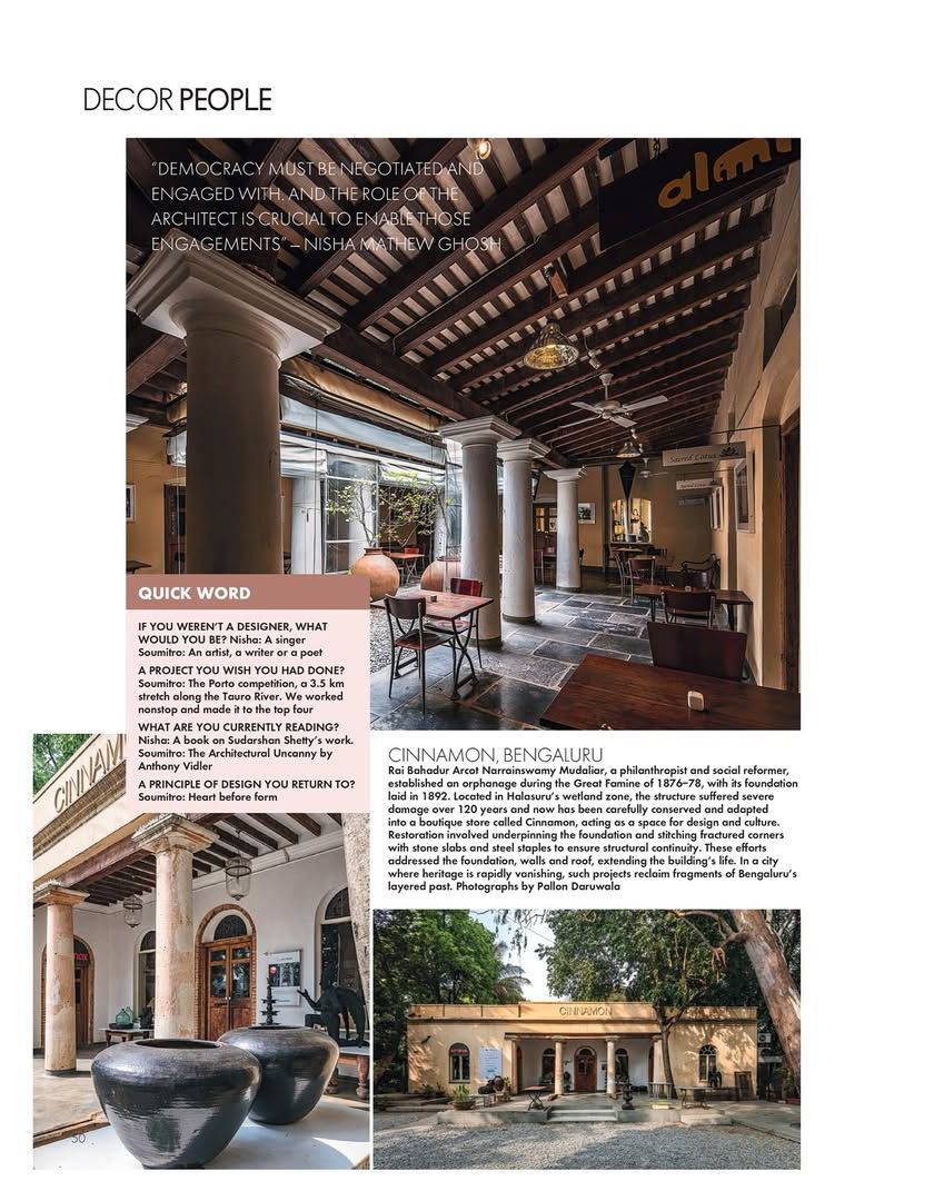 Our work is a collaborative effort, and we are grateful for the recognition it has received from our peers and the press. This cluster includes features in publications like Architectural Digest and Elle Decor, as well as photos from our lectures and talks. It also introduces our core team, the people behind the practice.