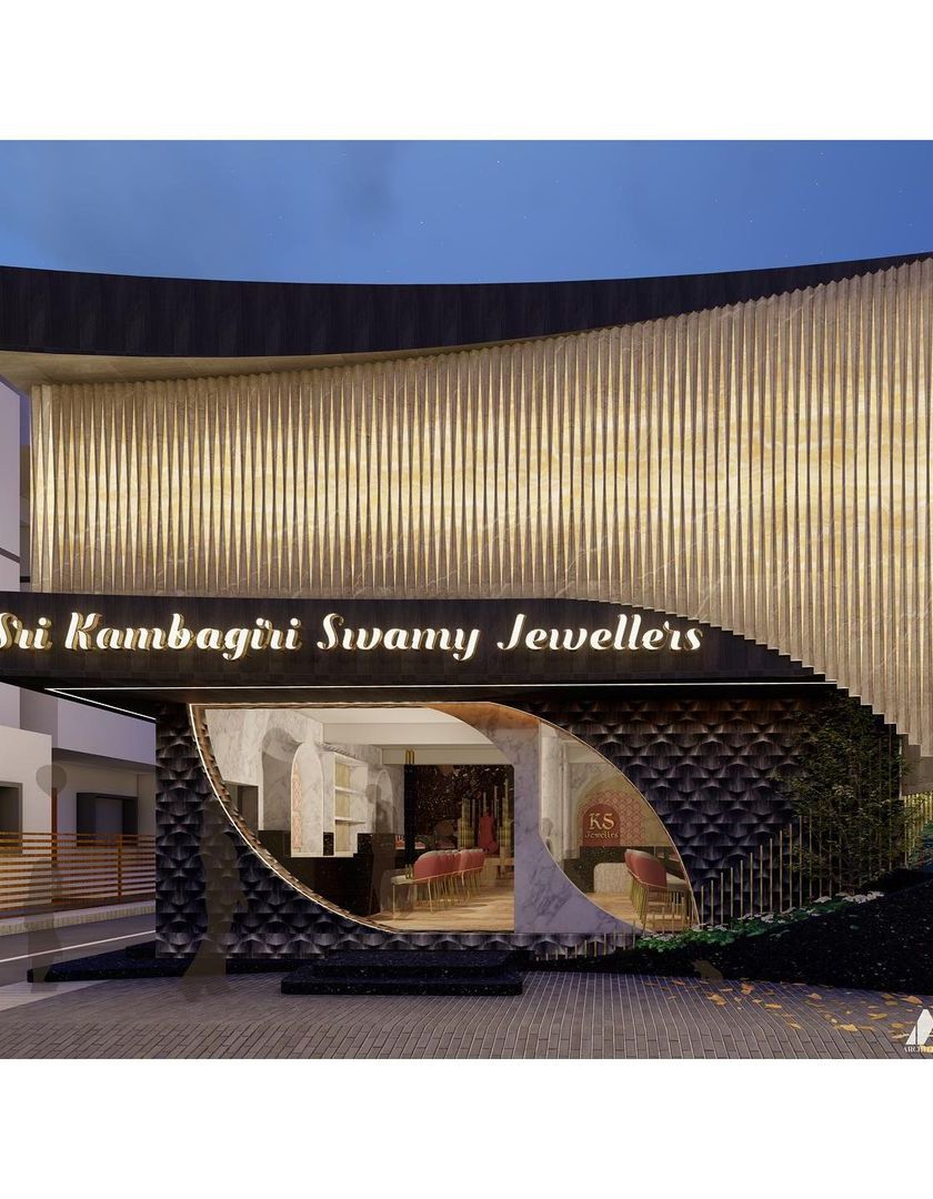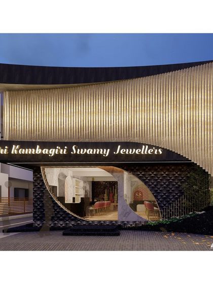 We specialize in creating memorable and luxurious retail environments for jewellers. Our designs focus on dramatic facade architecture and immersive interiors that elevate the customer experience, as seen in our award-winning 'Serene Radiance' project for Sri Kambagiri Swamy Jewellers.
