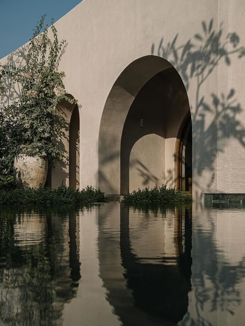 This award-winning villa explores the dialogue between mass and void. We used a modular grid, rhythmic arches, and lime plaster to create a sequence of spaces that flow into courtyards and water bodies, blurring the line between the built form and the Alibag landscape.