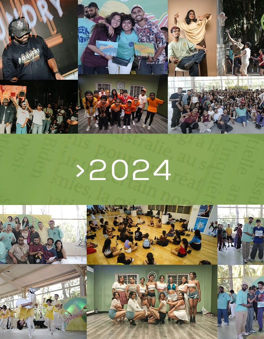 Spectra is our annual street dance festival, a two-month journey of training that culminates in an epic event. It’s all about 1v1 battles in styles like Hip-Hop and House, creative group showcases, and celebrating our incredible dance community.