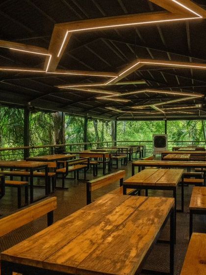 All that adventure is going to make you hungry. I offer a full buffet with a wide variety of delicious veg and non-veg options to refuel your team. The dining area is set amidst greenery, so you can enjoy a great meal with a view.