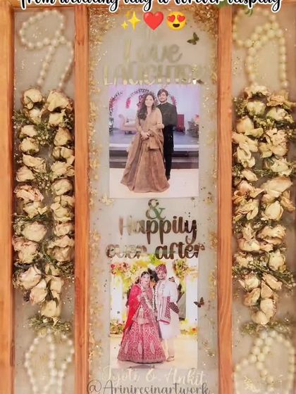For those who want to preserve their entire varmala without breaking it. I create oversized teakwood and custom frames that display your garlands in their full glory, creating a grand and impactful statement piece for your home.