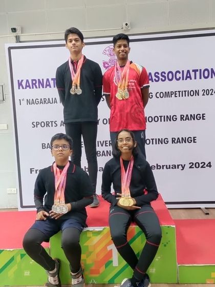 We train shooters to win. Our students consistently secure medals at state and national level competitions, including events hosted by the Karnataka State Rifle Association. This is a testament to our rigorous training, expert coaching, and the dedication of our athletes.