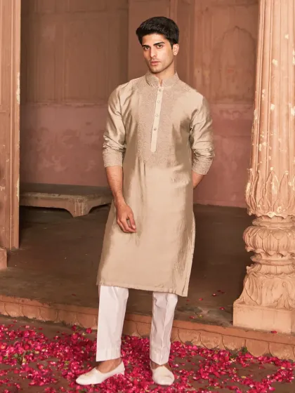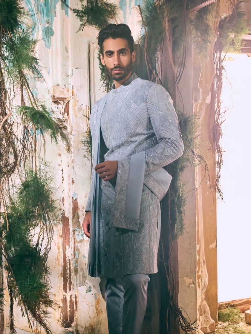 My approach to menswear is centered on refined elegance and impeccable tailoring. I help grooms and their groomsmen find ensembles that are sophisticated and comfortable, whether it's a classic sherwani, a modern bandhgala, or a relaxed kurta set. The focus is on high-quality fabrics, subtle craftsmanship, and a perfect fit.
