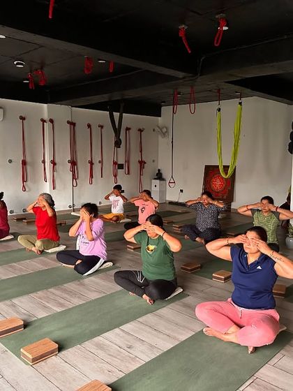 - Aerial yoga is where you get to have fun (masti) and work on your core - hammocks, hanging, and building strength.