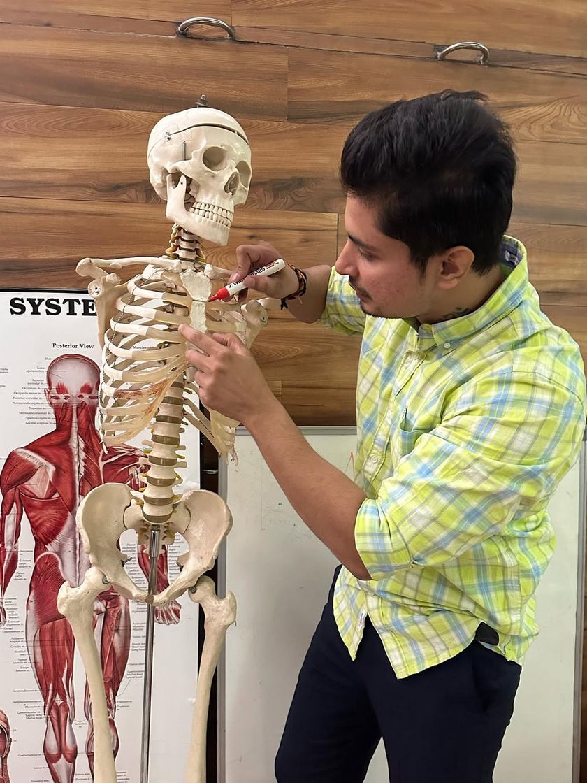 *Yoga sirf asana nahi hai*, it is a science of the body. In my teacher training, we use anatomical models to understand biomechanics, from the 'tripod of the foot' to spinal movement, so you can teach with safety, precision, and confidence.
