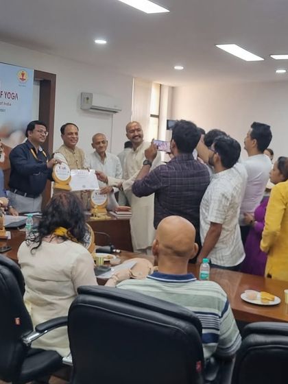 We believe in spreading the message of wellness beyond the mat. This gallery showcases our engagement in community events, from health and nutrition camps in schools to being honored by the Ministry of AYUSH for our contributions on International Yoga Day.