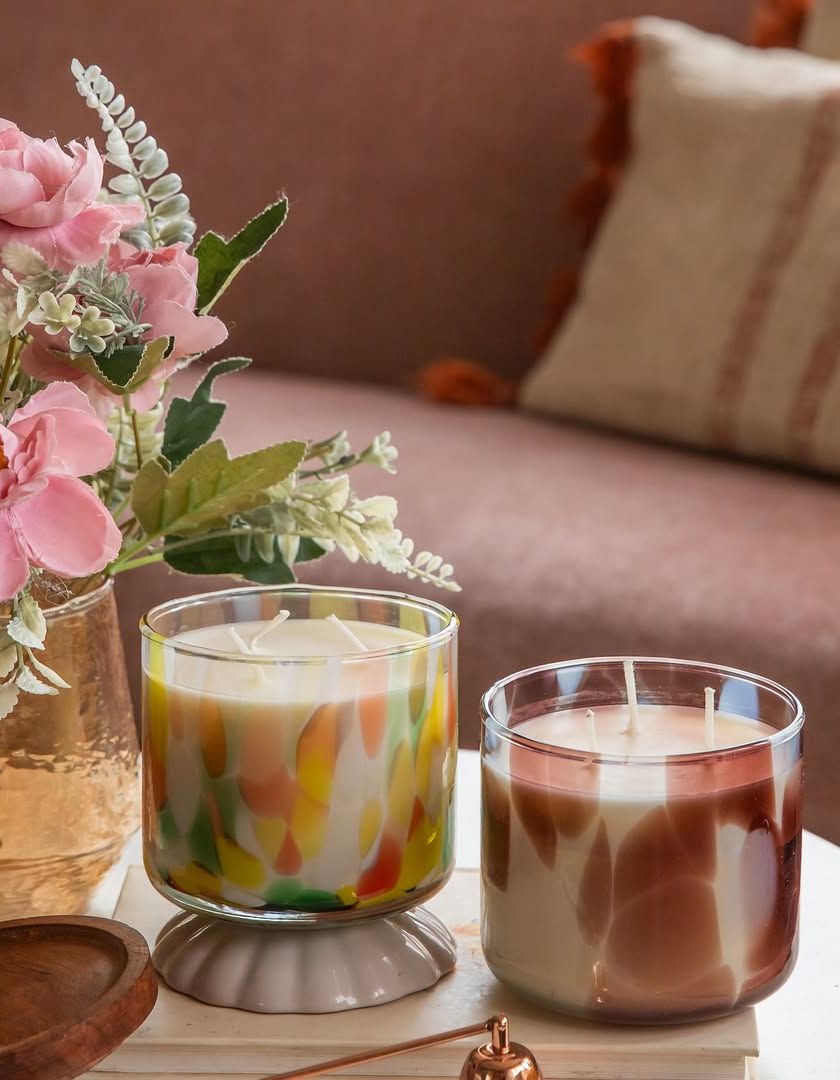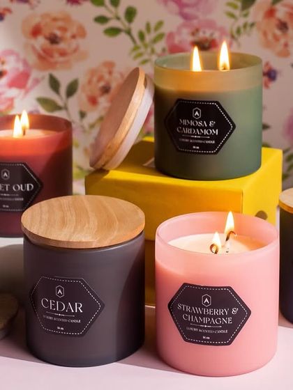Discover our core collection of artisanal candles, hand-poured in India using 100% natural soy wax for a clean, non-toxic burn. We offer a variety of styles, from minimalist glass jars with Indian Rosewood lids to colorful, decorative vessels to match any decor.
