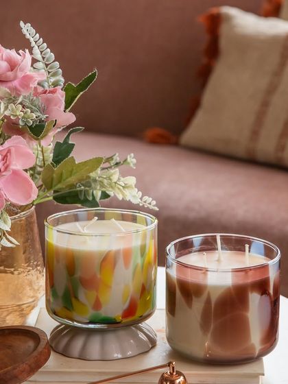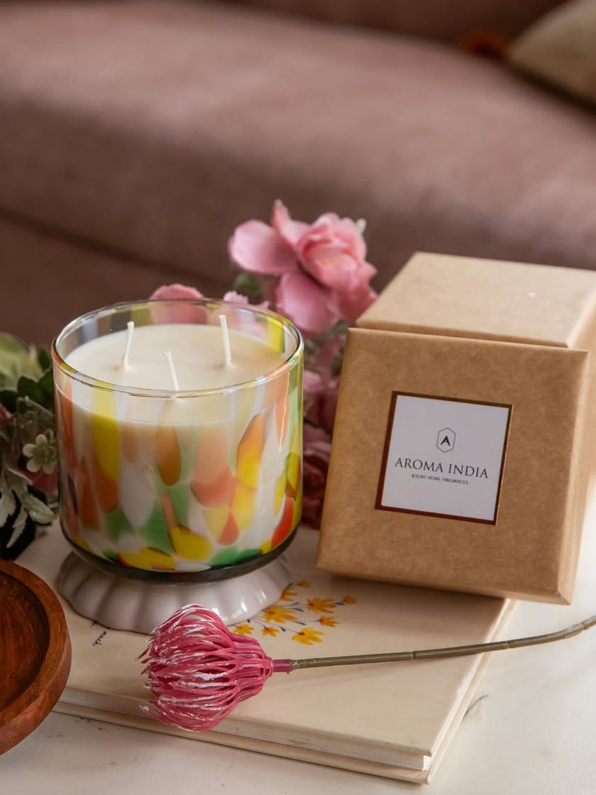 Each candle in this collection is a unique piece of art, featuring vibrant, colourful patterns in the glass. They make for a stunning statement piece or a memorable gift for any occasion.