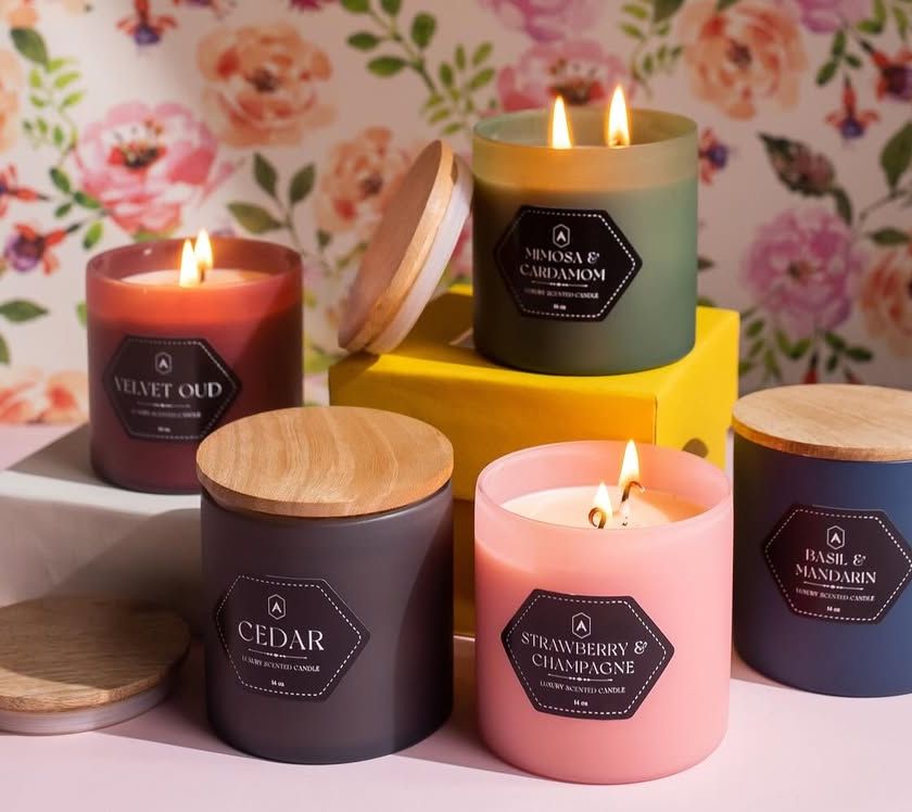 Discover my core collection of scented soy candles, hand-poured in elegant glass jars with wooden or metallic lids. These are perfect for creating a sophisticated ambiance and are available for custom and bulk orders.