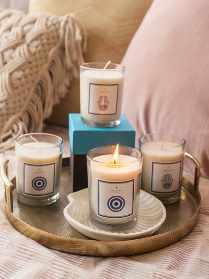 Elevate your corporate gifting with thoughtful, handcrafted items. My Evil Eye and Hamsa candle collections are popular choices for bringing good vibes and protection, making them a unique and meaningful gift for clients and employees.