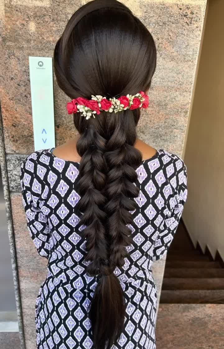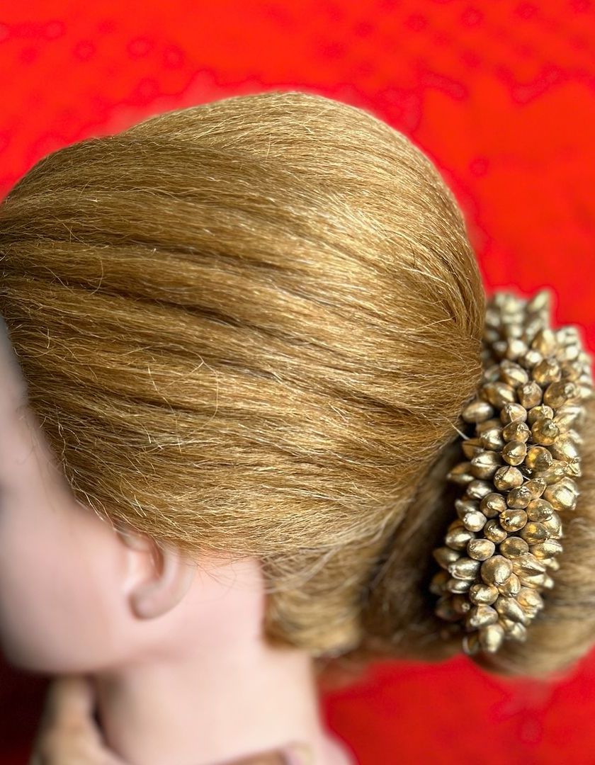 In my course, I place special focus on mastering traditional South Indian bridal looks. You will learn to create stunning, full-length braids with extensions and perfectly place intricate temple jewelry and fresh flowers for the complete muhurtham look.