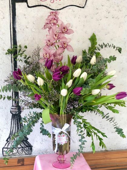 - If you want something unique, I go for stylized designs - maybe an ombre heart box, or mixing tulips, orchids, eucalyptus.