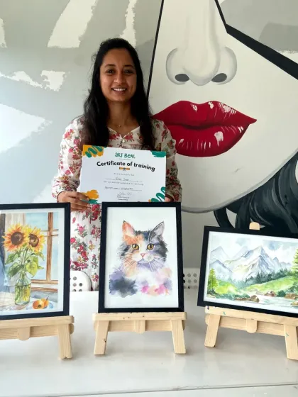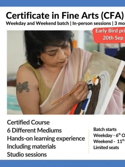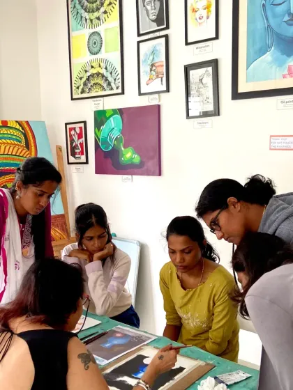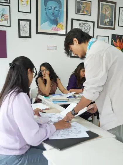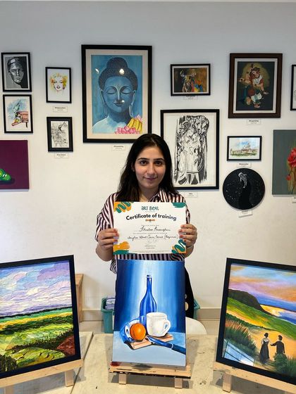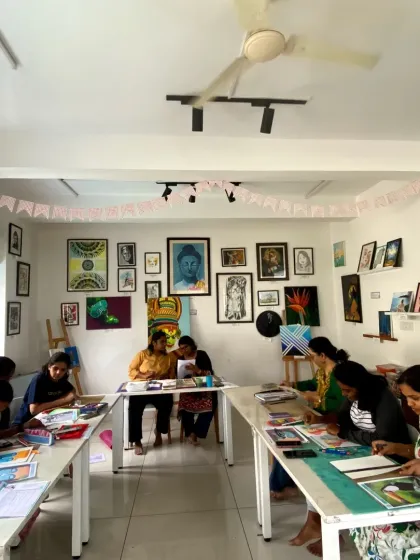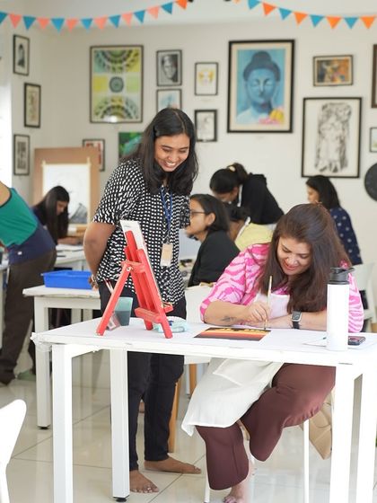 We offer beginner to advanced art courses where you get guided practice in multiple mediums, all materials included, flexible timings, and options for hobbyists, portfolio building, or teacher certification.