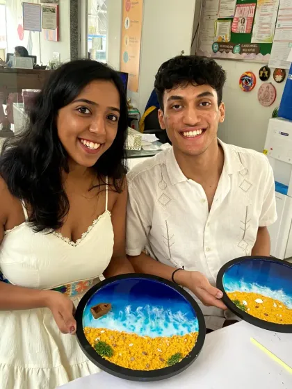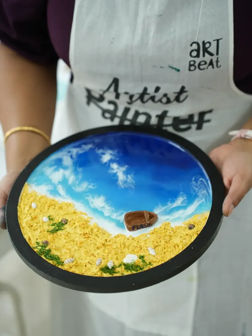 This is our most popular workshop, and for good reason. I will guide you step-by-step to pour, swirl, and manipulate glossy resin to create stunning pieces like beach scenes, galaxy clocks, or serene koi ponds. All materials are provided, so you just need to show up and be ready to make something magical.