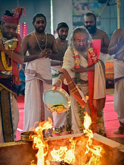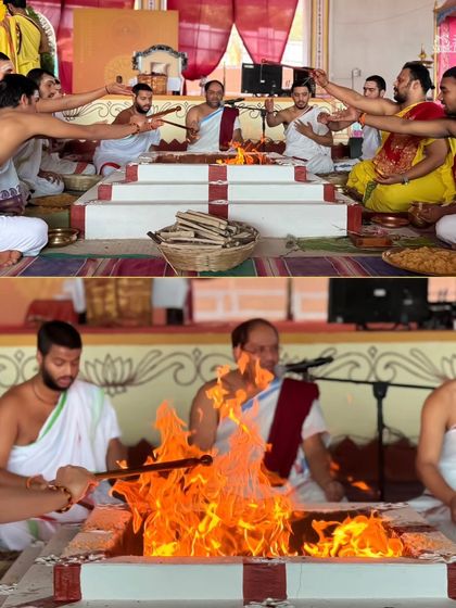 We host large-scale religious festivals and weekly Vedic ceremonies where anyone can join in person or online, set personal intentions, and experience rituals, meditation, and music together.